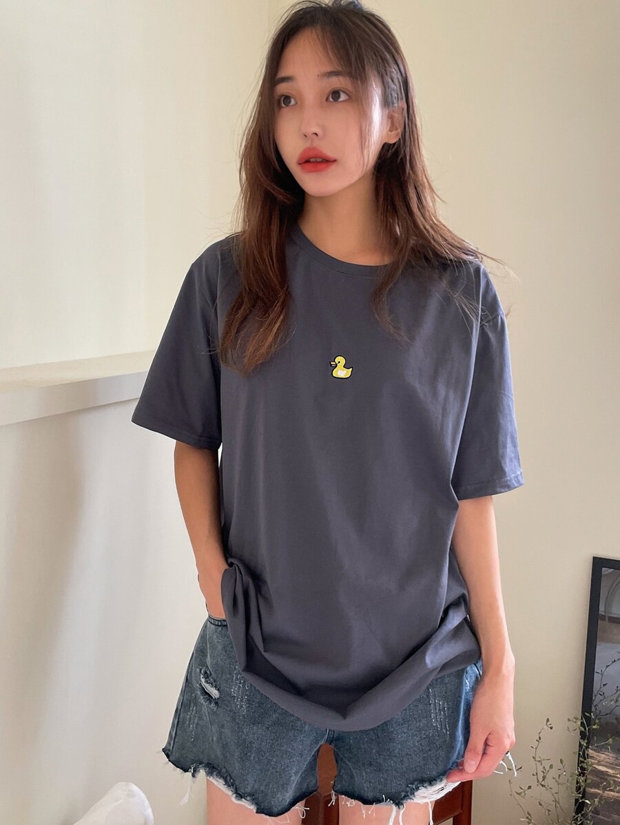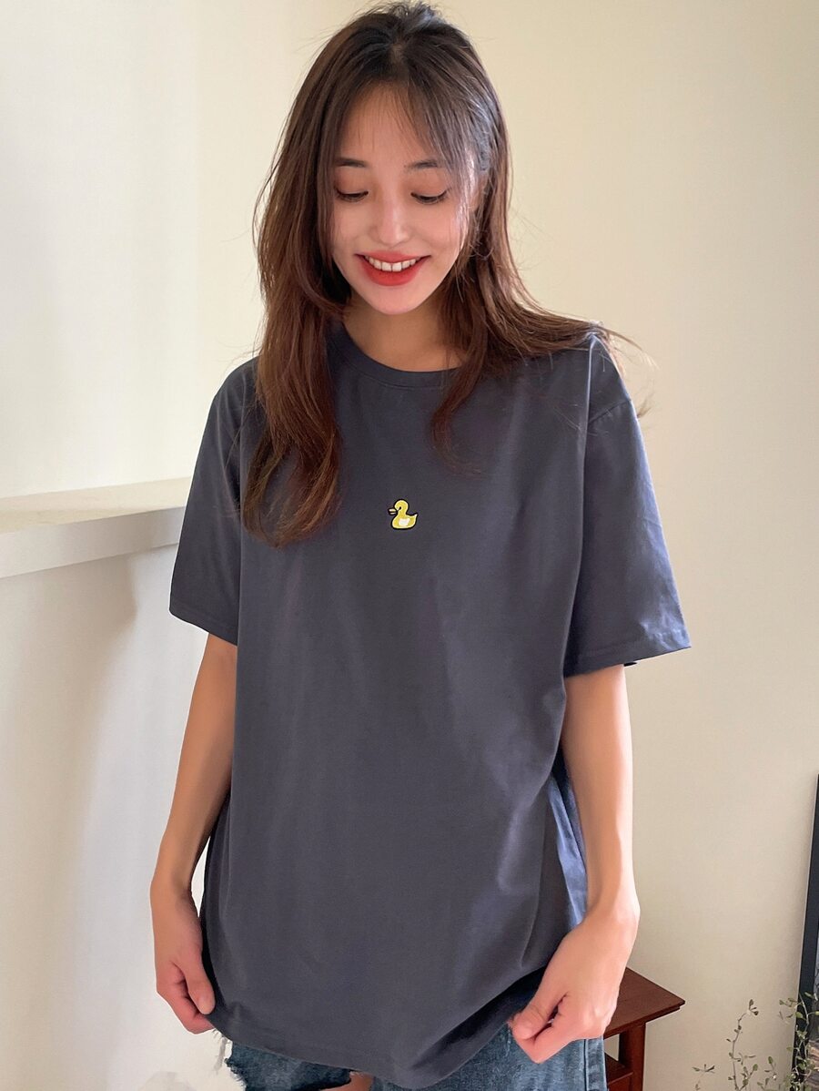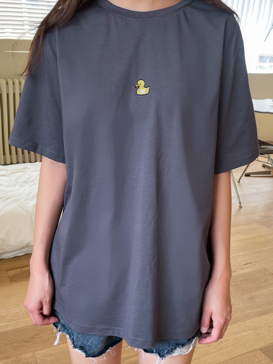 T-shirt oversize d'été à épaules tombantes avec broderie de canard