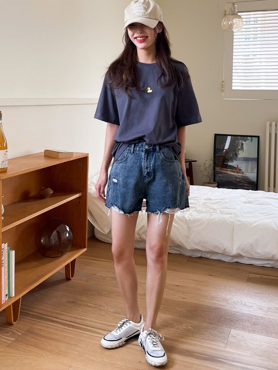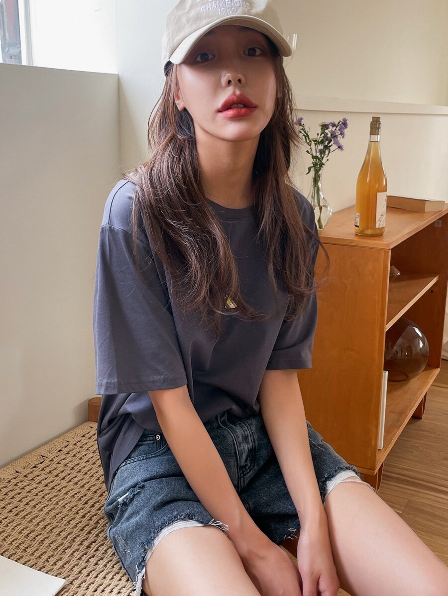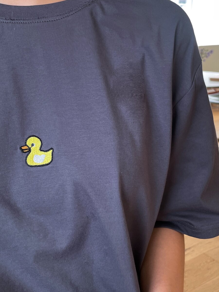 T-shirt oversize d'été à épaules tombantes avec broderie de canard