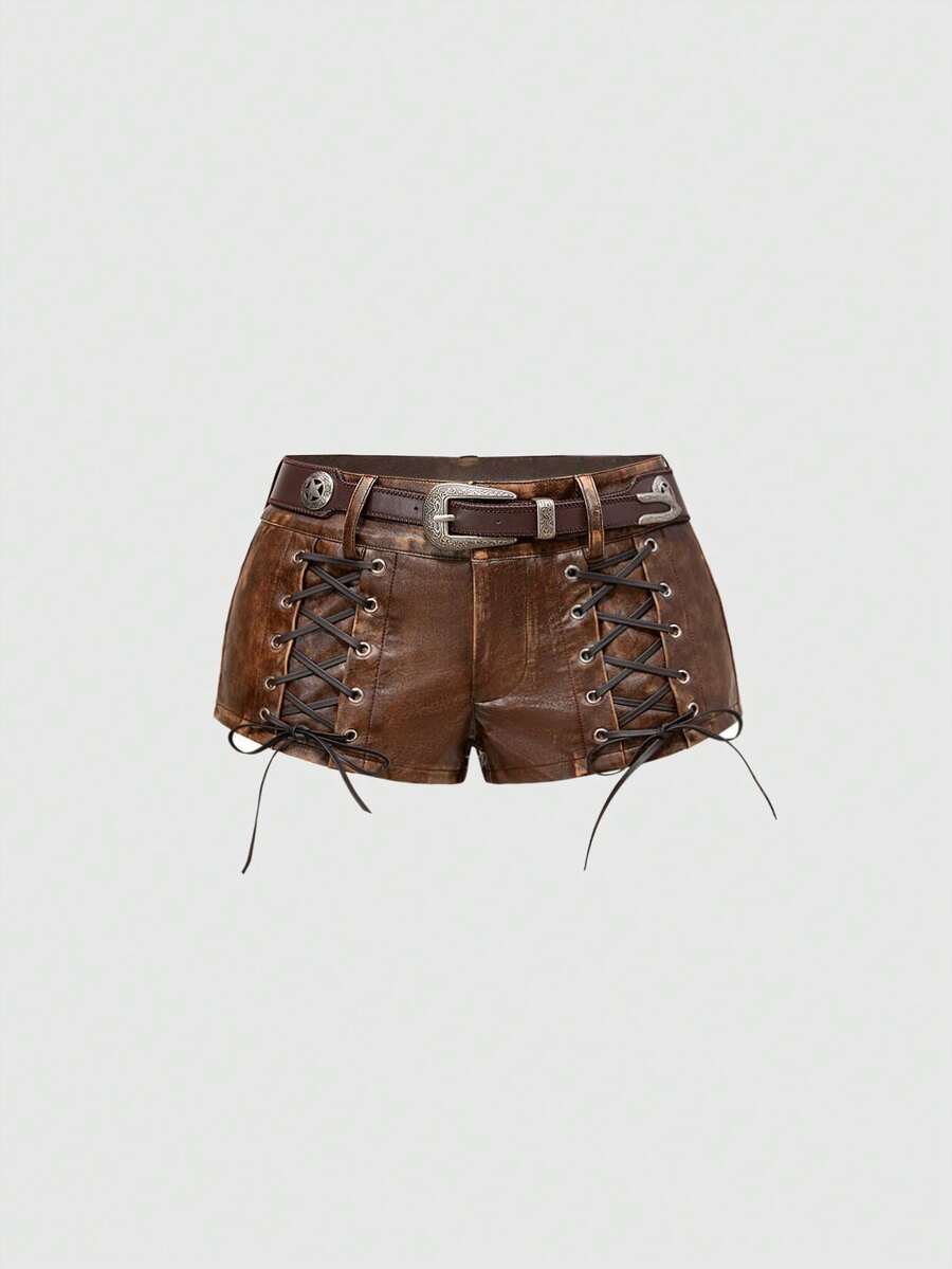 EDITION Short taille basse vintage hippie imprimé animal en fausse fourrure patchwork "Millennium Babe" pour femmes