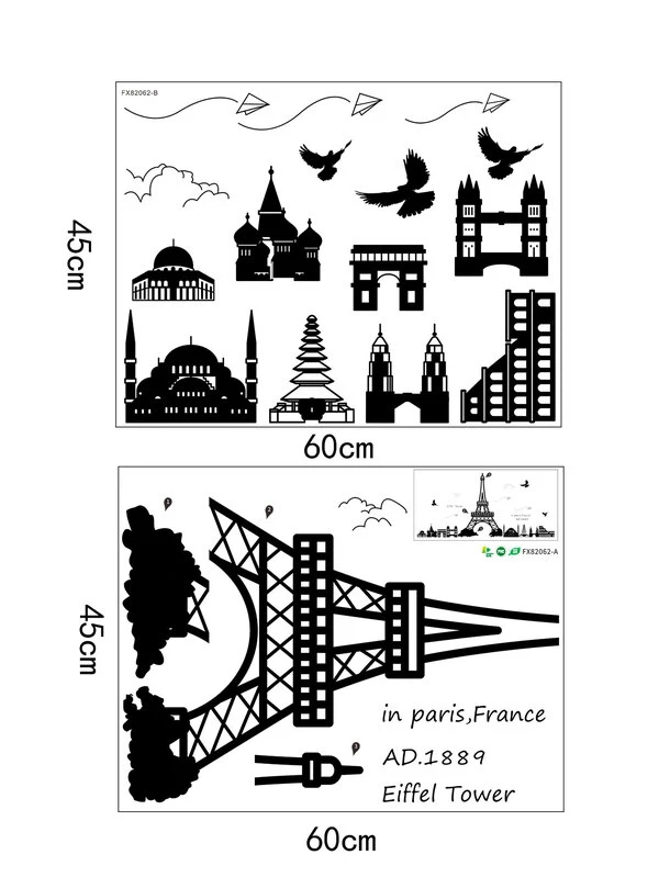 Sticker mural avec imprimé Tour Eiffel 2 feuilles