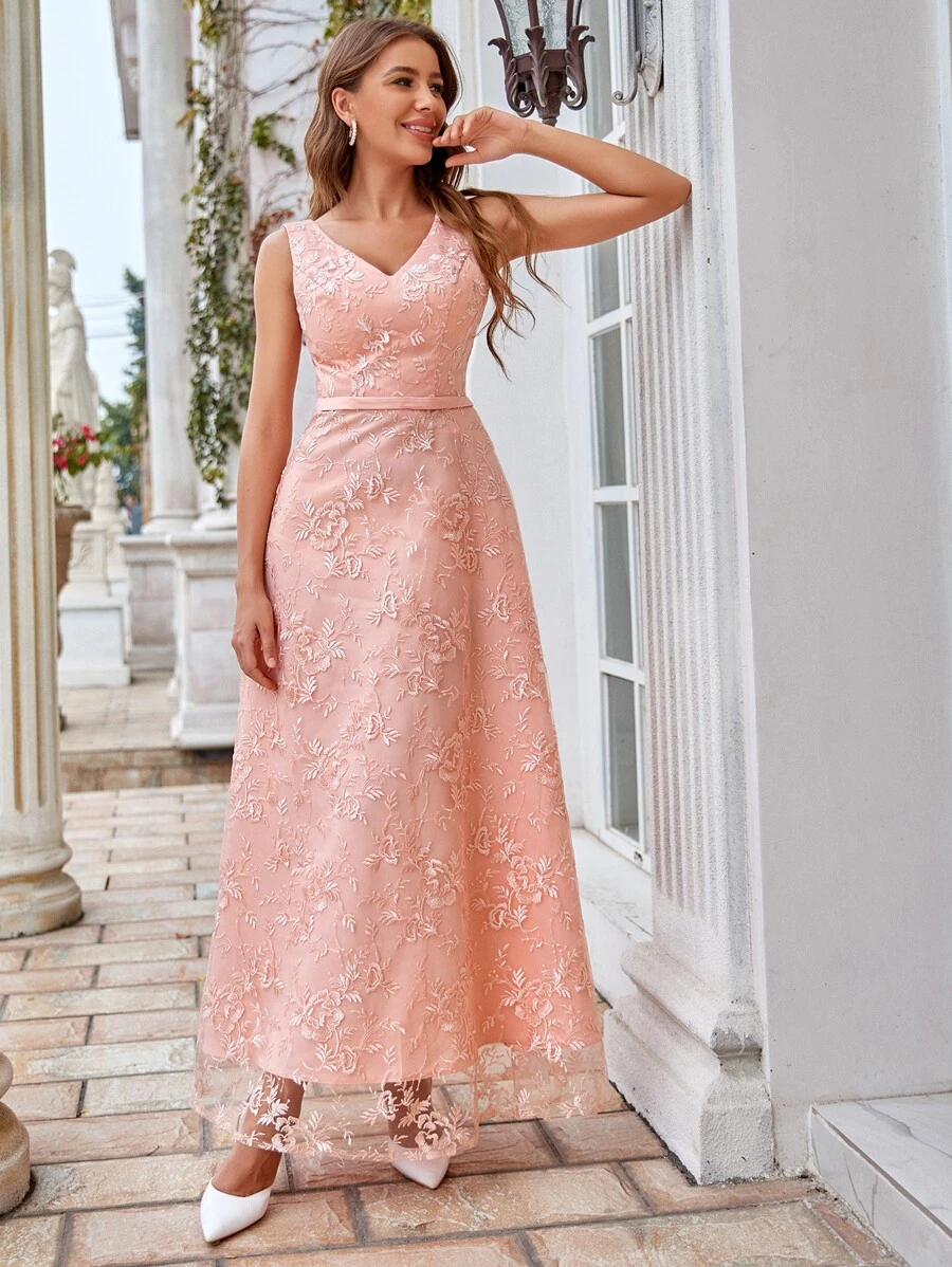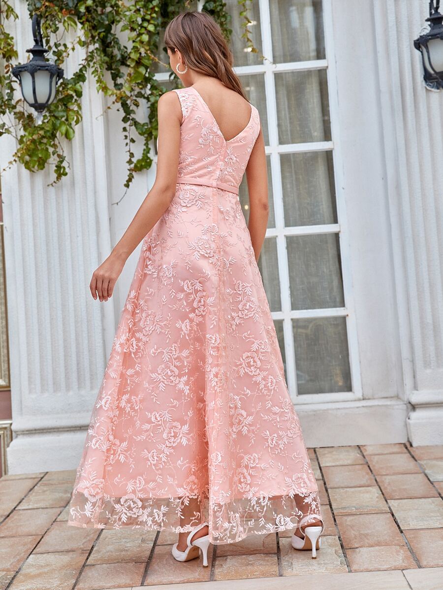 Robe de bal longue en tulle brodé
