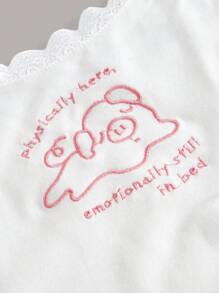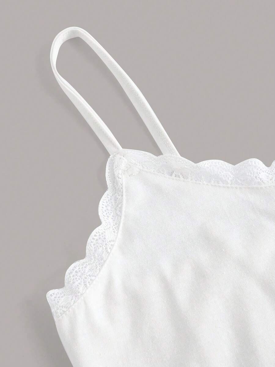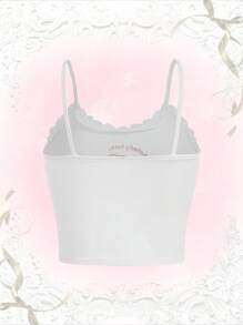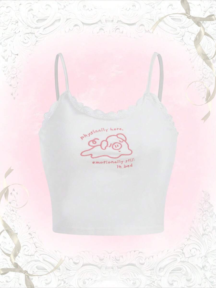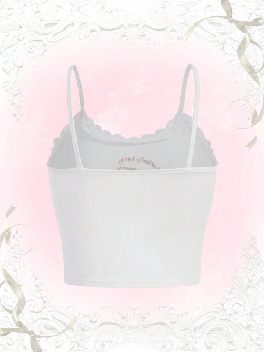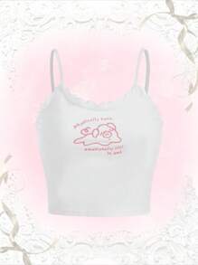 Emi Bee Top À Fines Brides Graphique De Slogan Ourlet En Dentelle