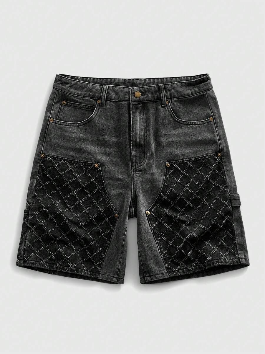 Essentials Shorts en jean cargo délavés et texturés avec patchwork pour hommes