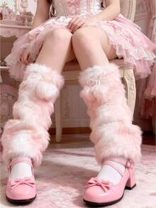 Fairycore 1 paire de jambières décoratives brun clair pour Noël et Halloween, imprimé sexy et mignon de cerf/animal avec pompon doux et lacets, chaud et pour femmes, convient pour le quotidien, le campus, les courses, les voyages en automne/hiver