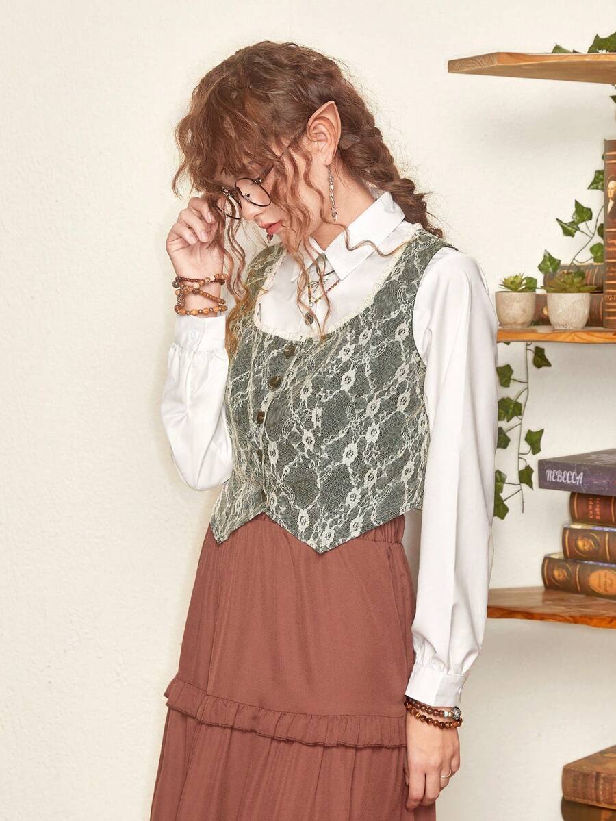 Fairycore 1 pièce Top Sans Manches En Dentelle À Bouton