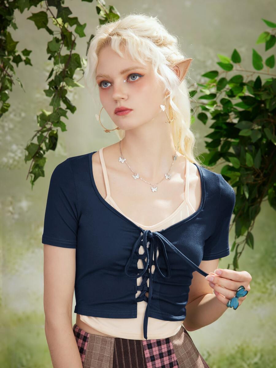 Fairycore T-shirt 2 en 1 à lacets