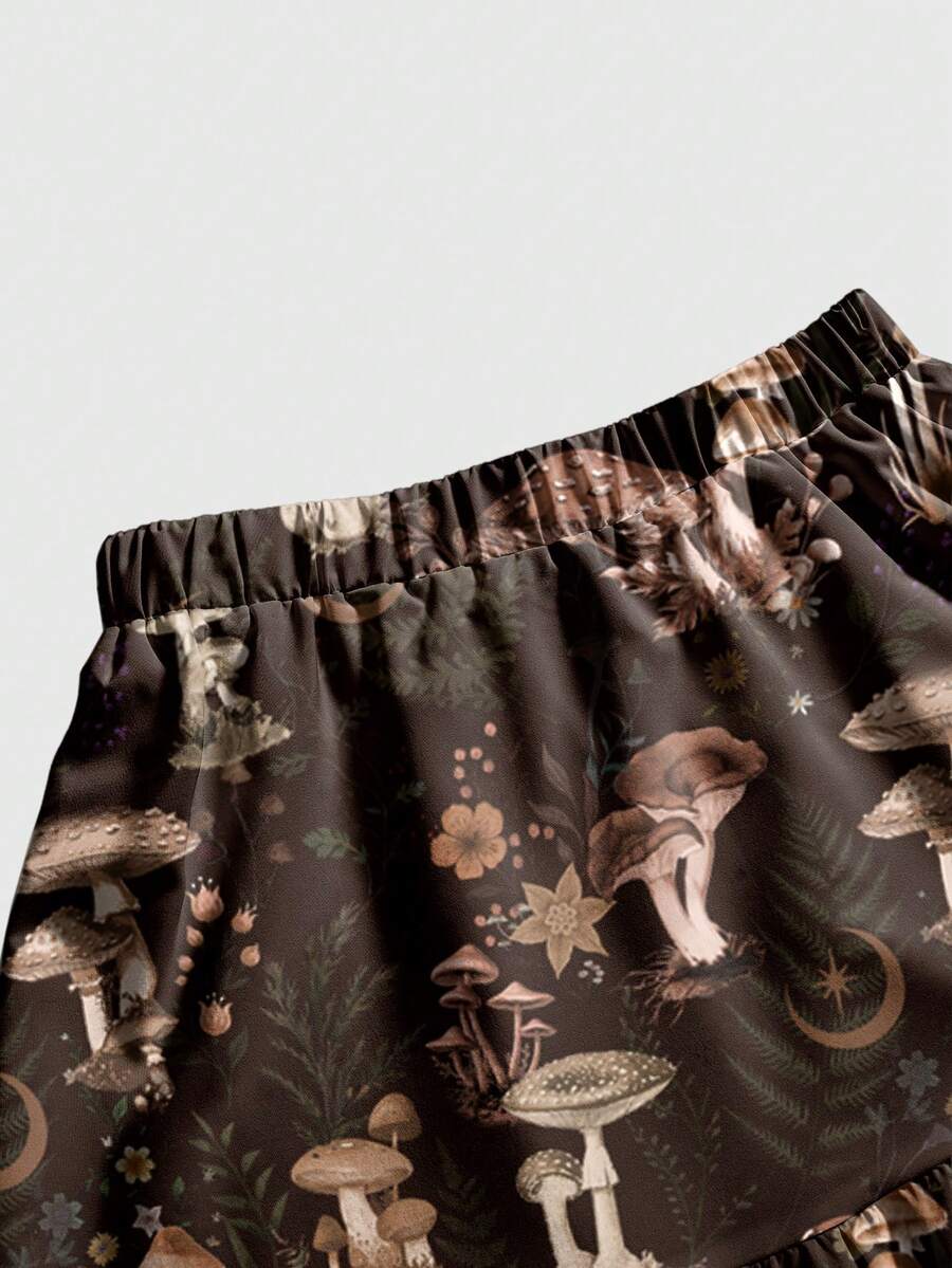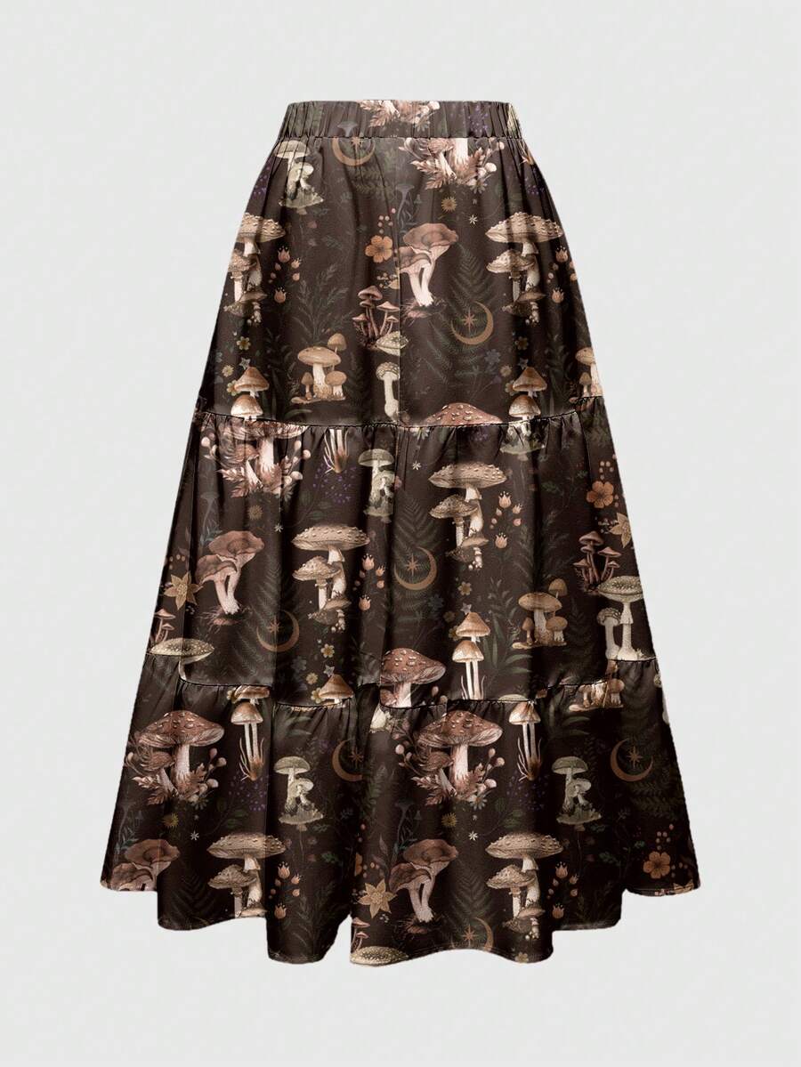 Fairycore Jupe pour femmes à imprimé tout-sur-tout en 3 couches avec motifs de champignons, nature, hippie, jardin, soleil, lune, étoiles, fleurs, plantes, feuilles