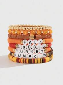Fairycore 8 pièces/set Bracelets à breloques en cristal de lettres de Thanksgiving en argile polymère, bracelets faits main avec breloques de feuille d'érable et de citrouille, bijoux d'automne et de Thanksgiving, cadeau pour épouse/fille, Halloween