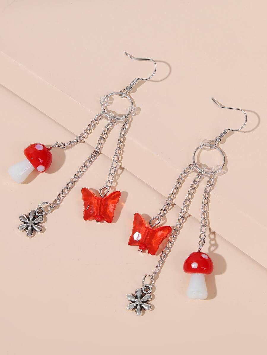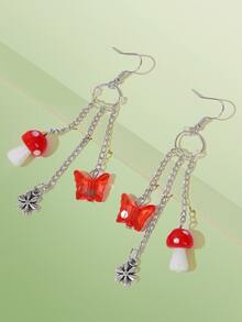 Fairycore Pendants d'oreilles avec papillon et champignon