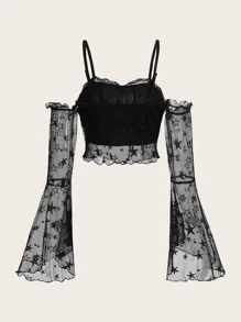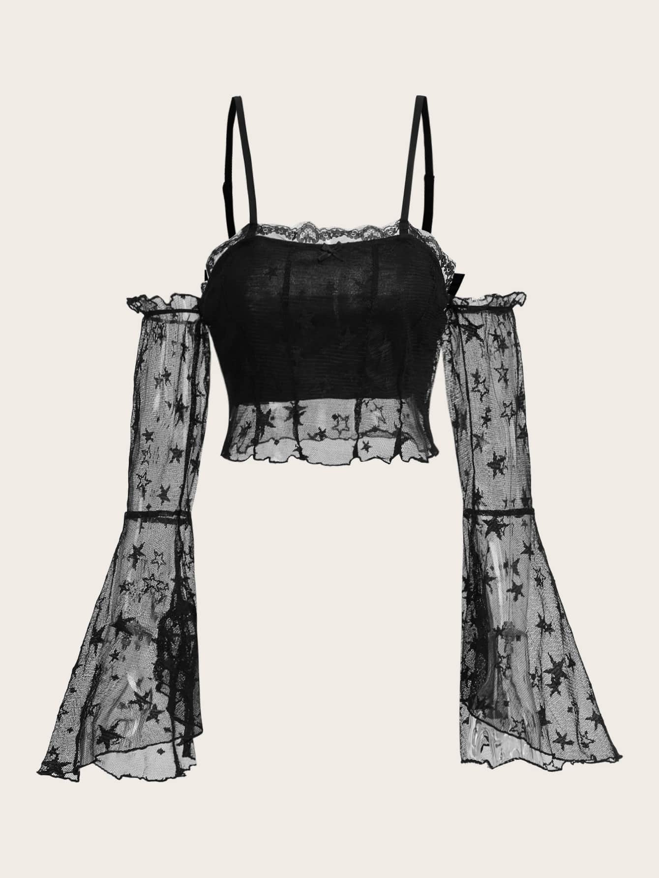 Fairycore Top En Dentelle À Épaules Dénudées Manches Évasées