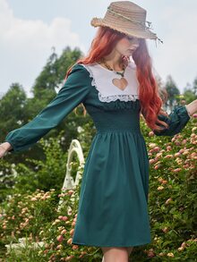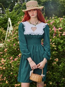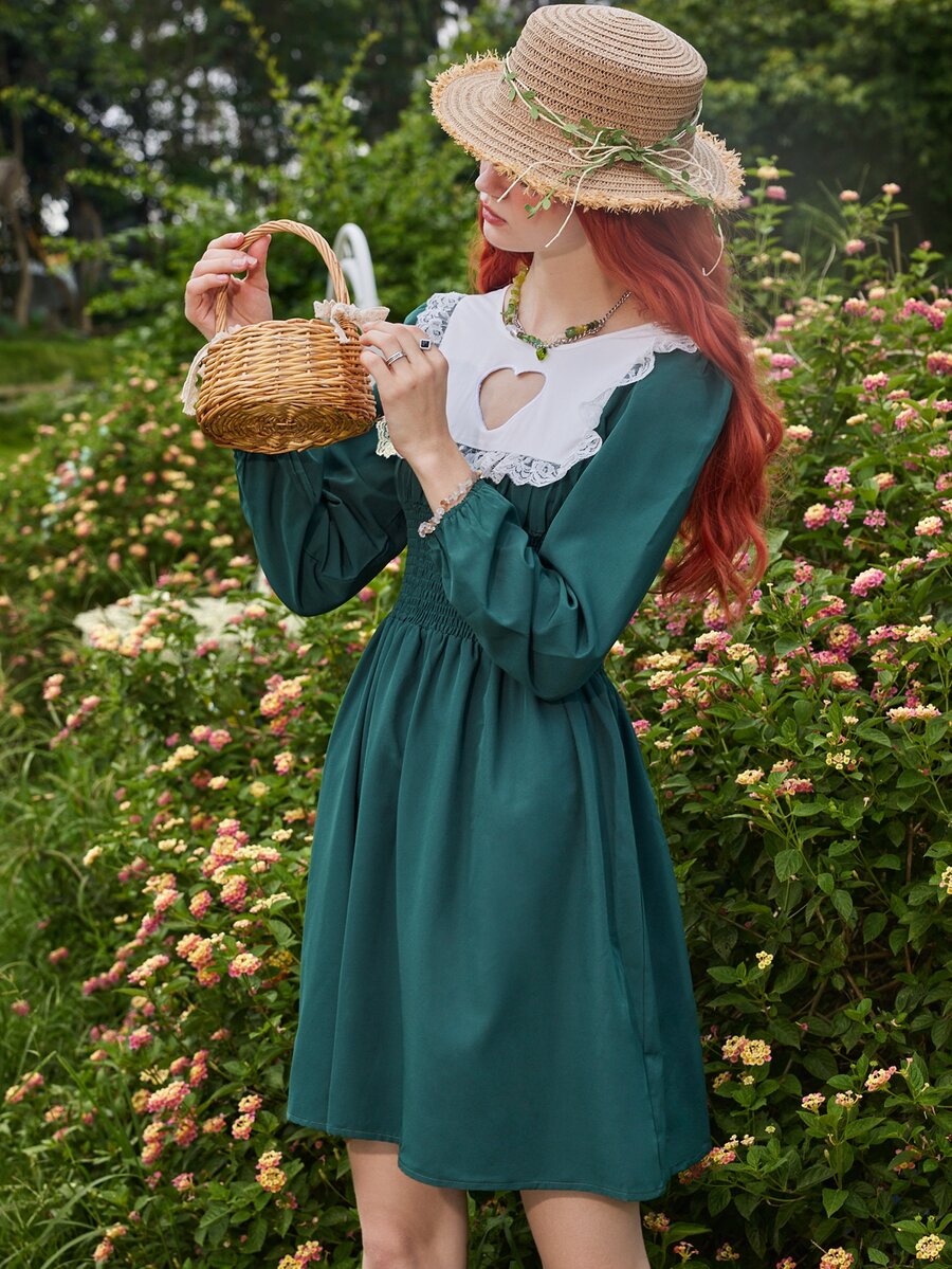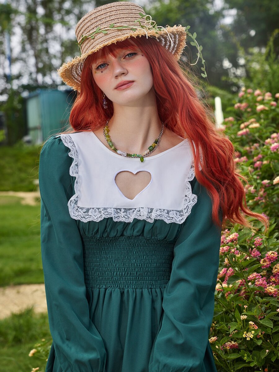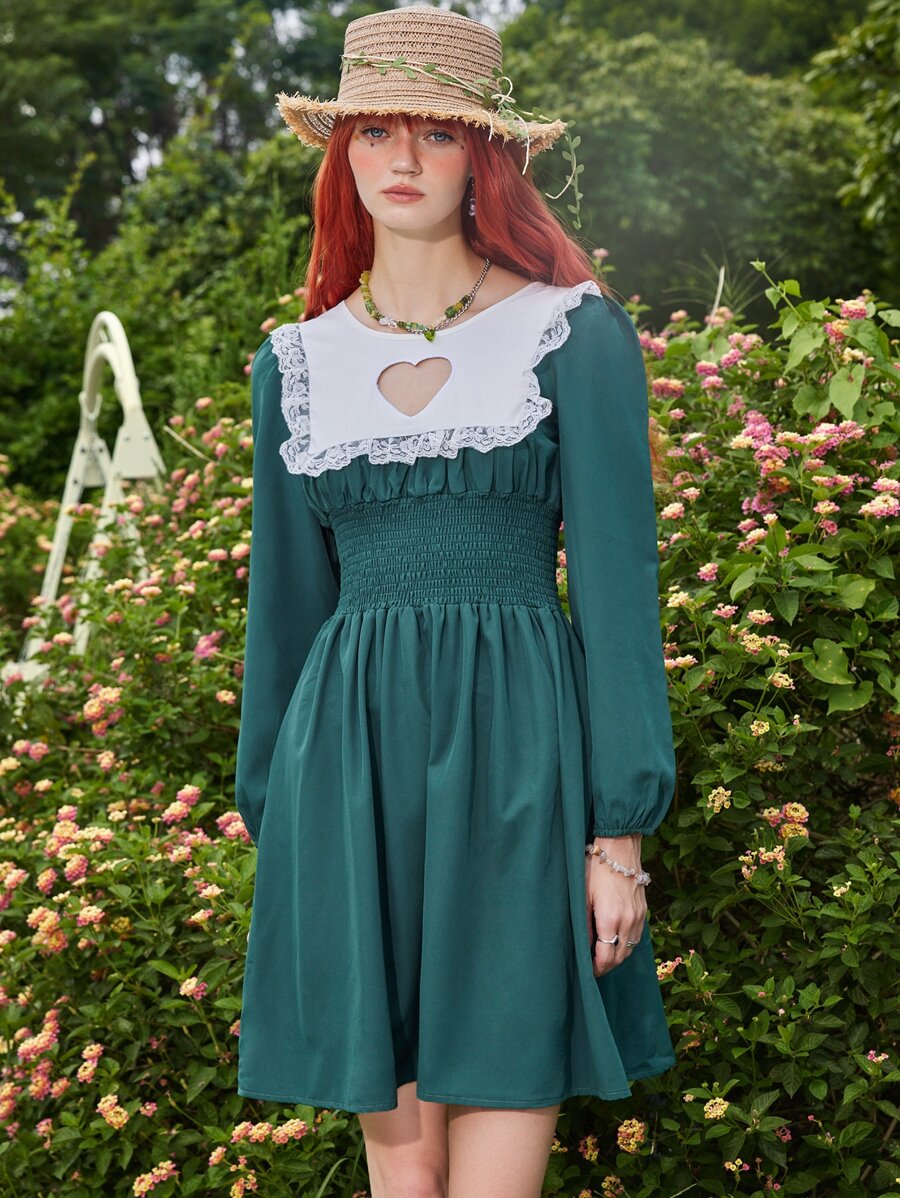 Fairycore Robe froncée en dentelle découpé
