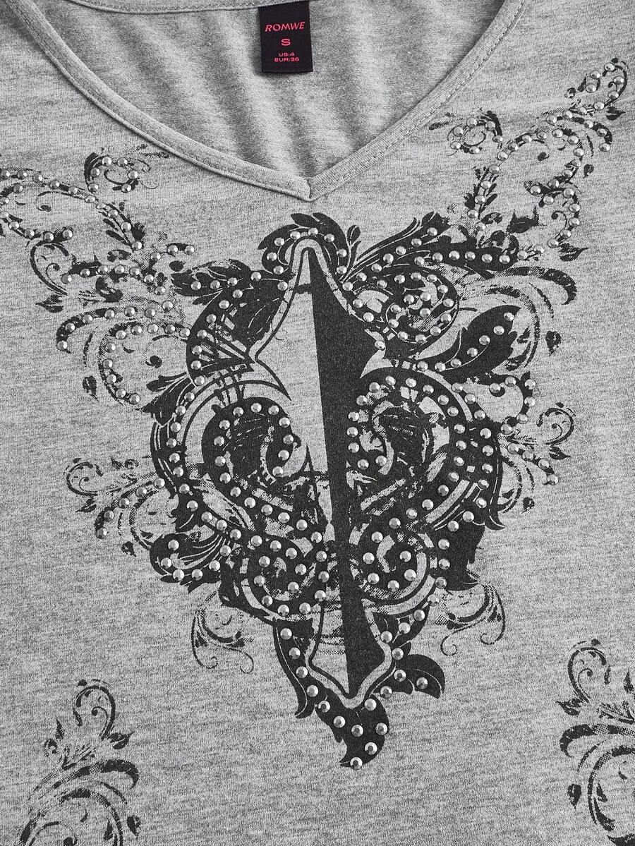 Fairycore T-Shirt Court Imprimé Floral À Strass
