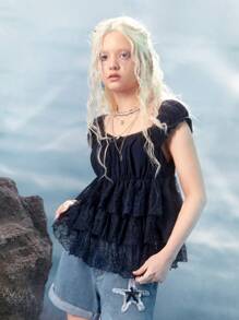 Fairycore Sirène Blouse Unicolore En Dentelle