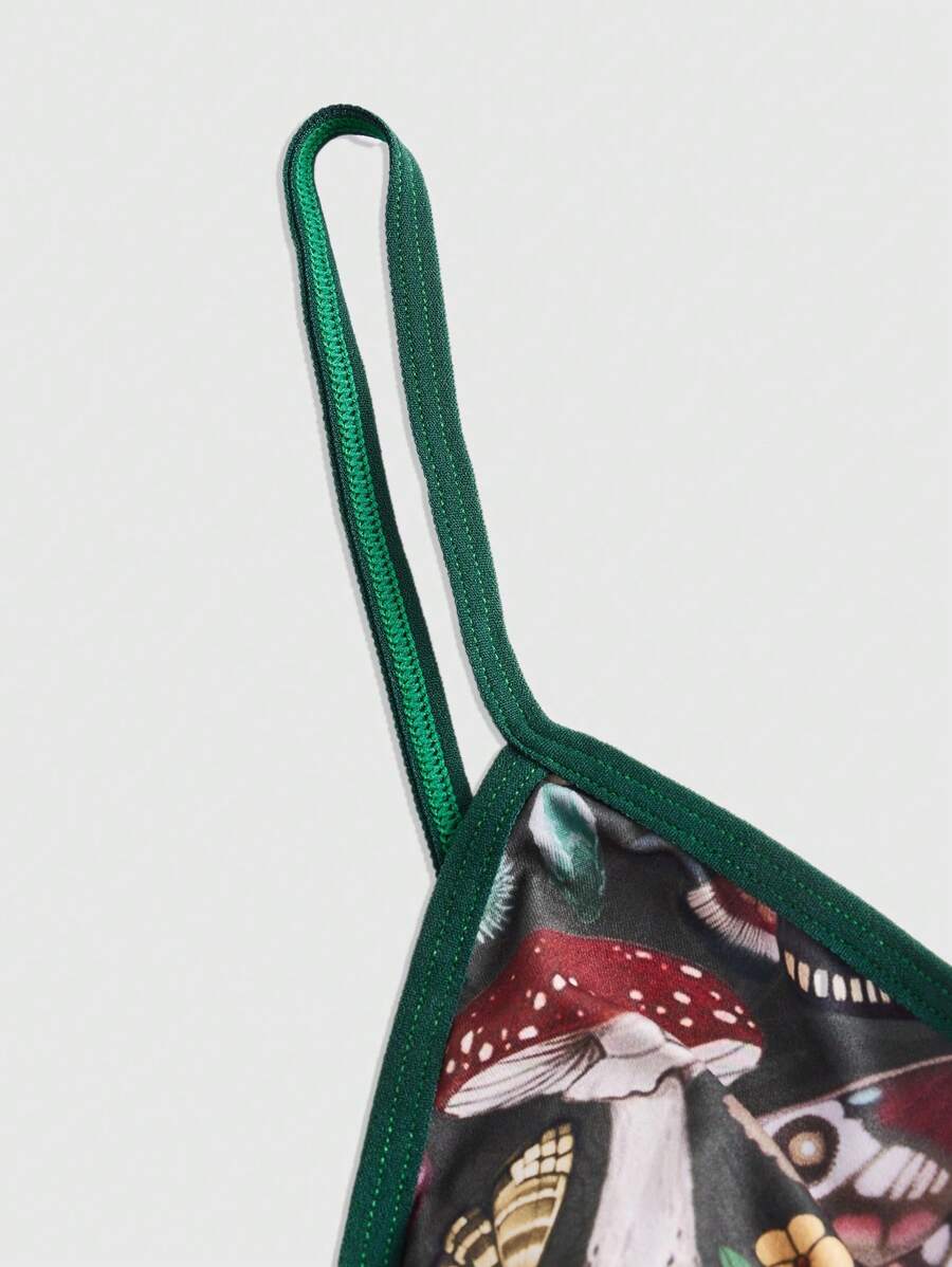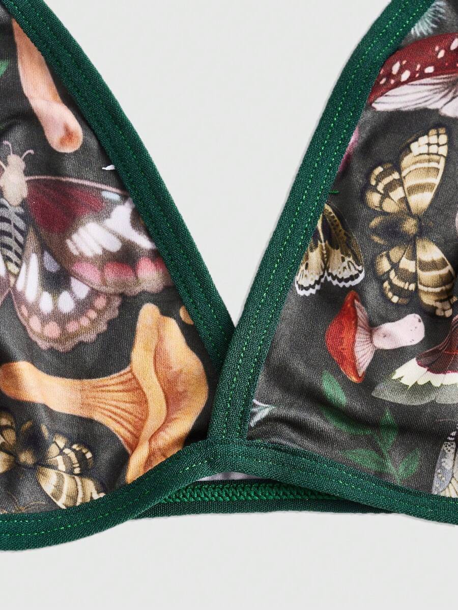 Fairycore Bralette Imprimé Champignon À Liseré Contrastant