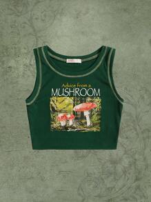 Fairycore Top sans manches à imprimé champignon