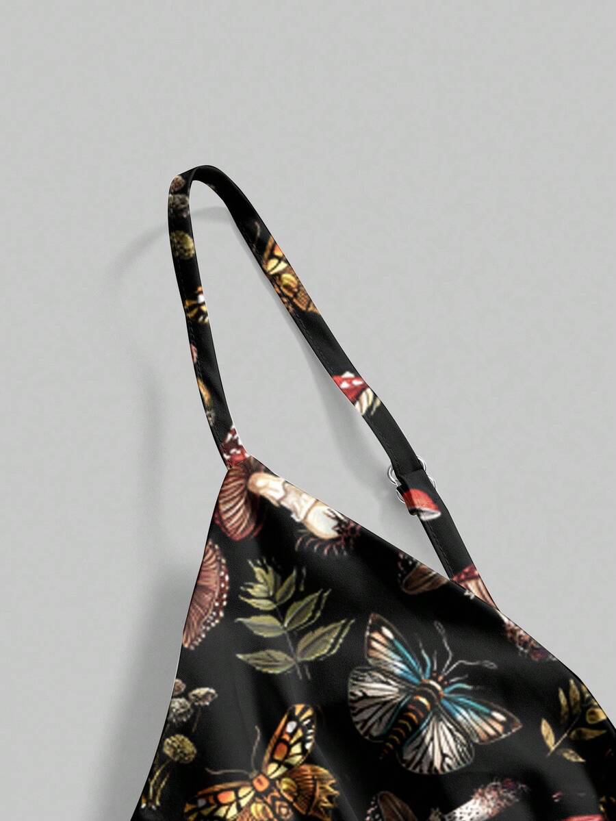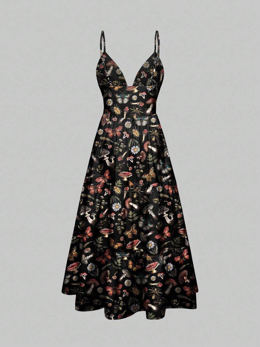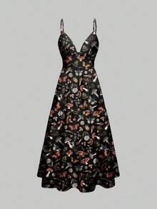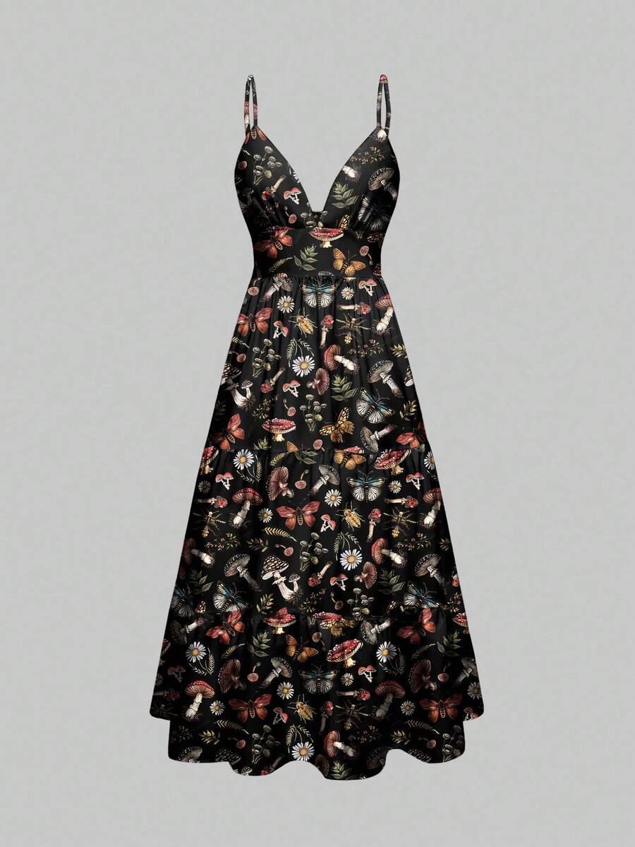 Fairycore Robe sans manches pour femmes avec imprimé de champignons et de plantes inspiré de la nature, style hippie sombre
