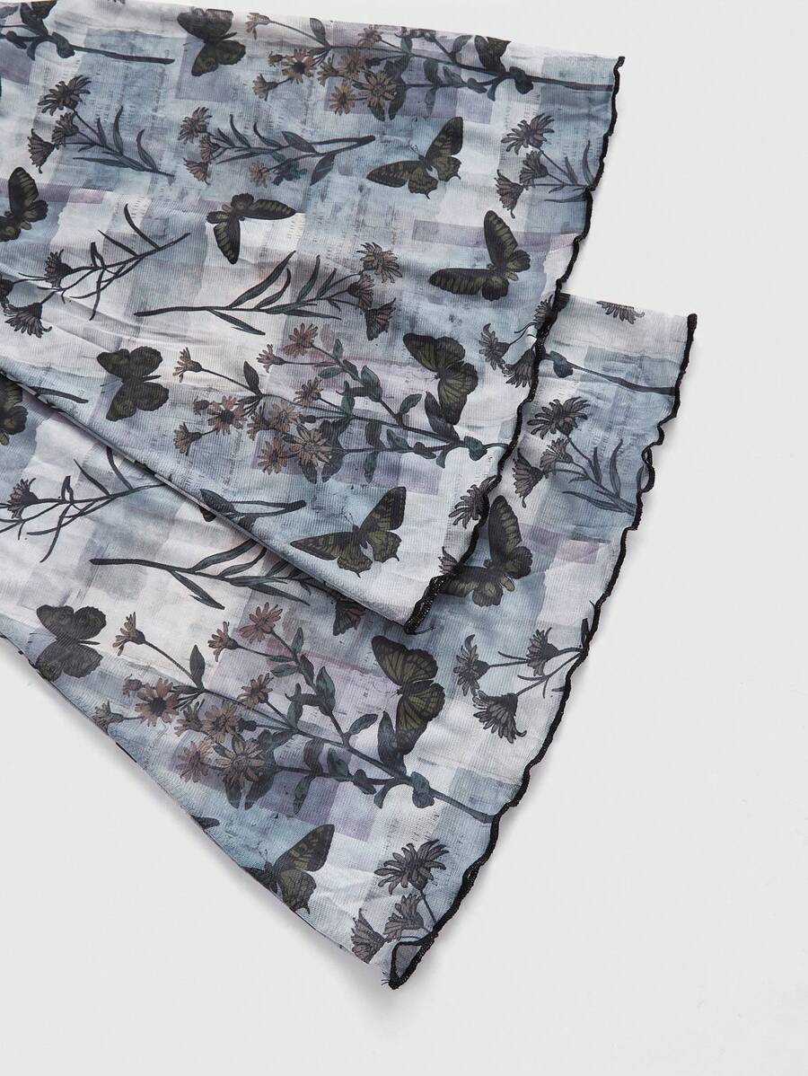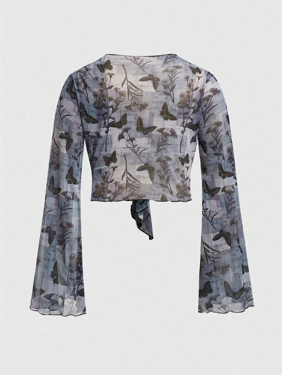 Fairycore Top à manches évasées avec nœud devant et imprimé papillon