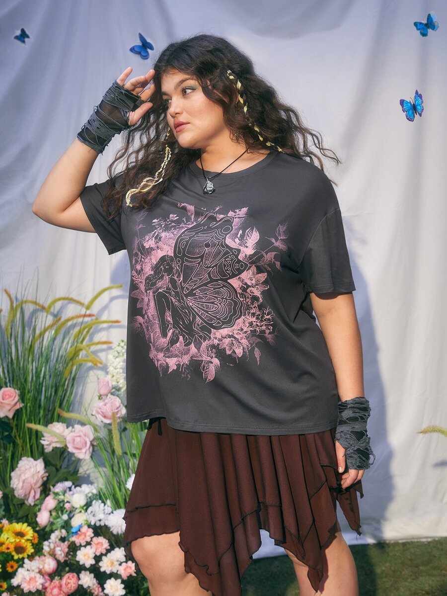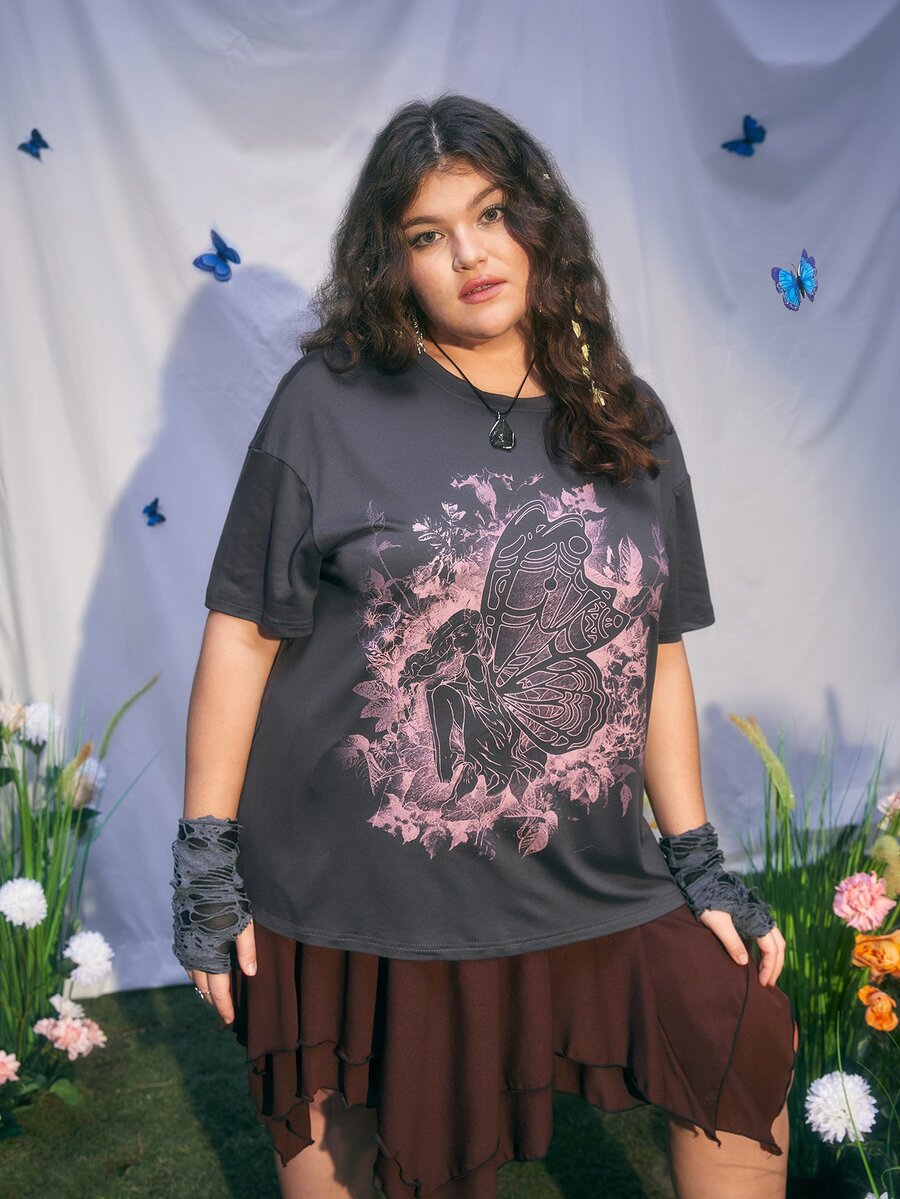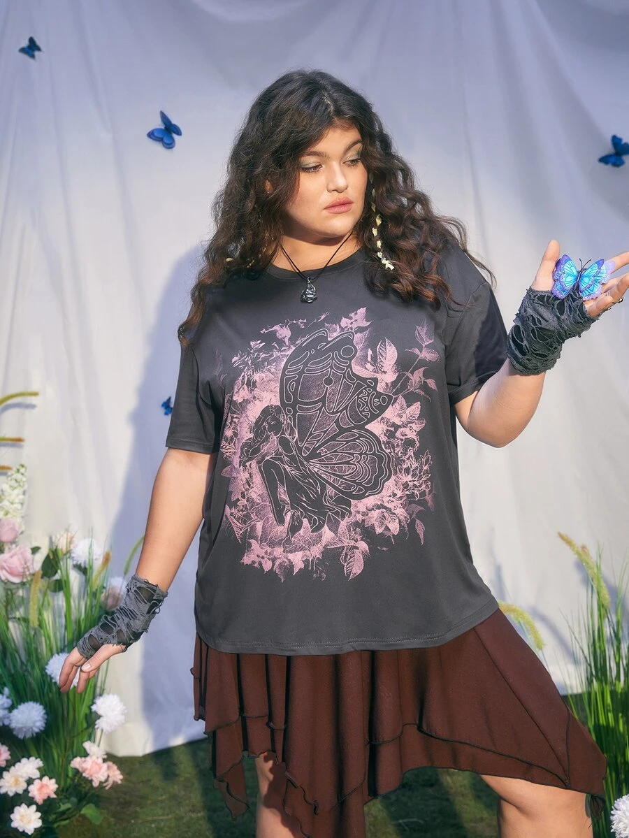 Fairycore Plus T-shirt figure & Imprimé Aile