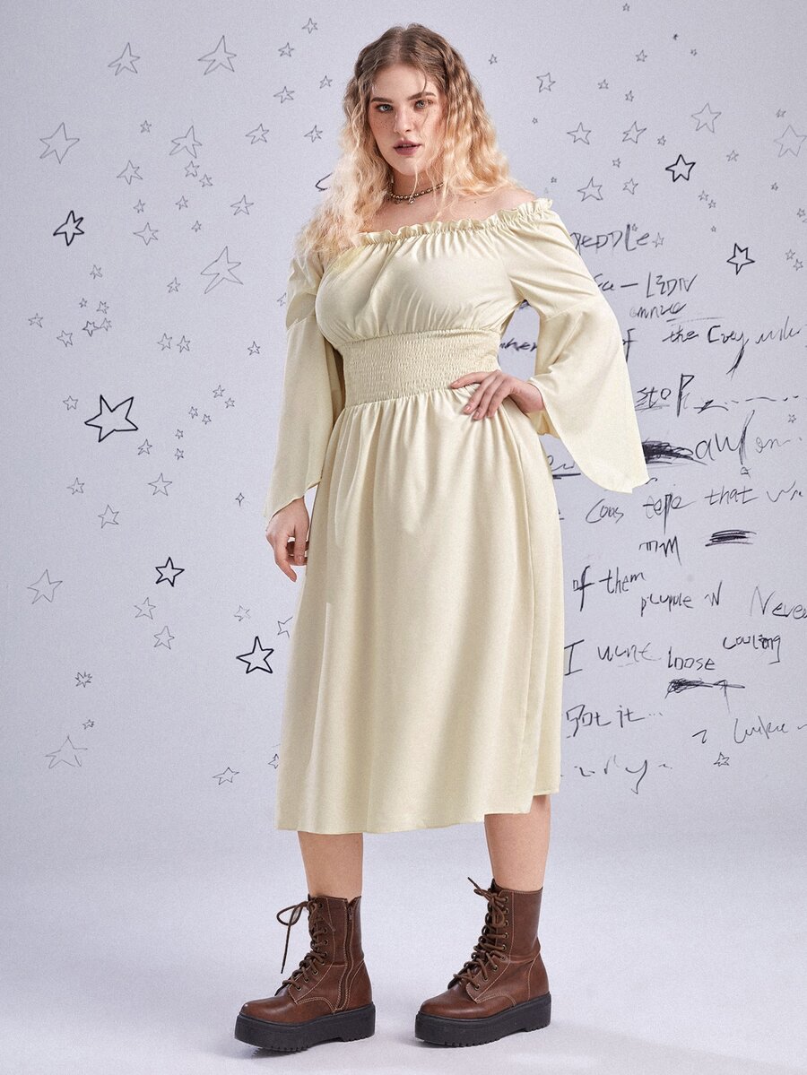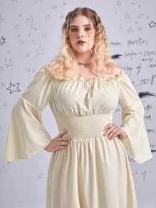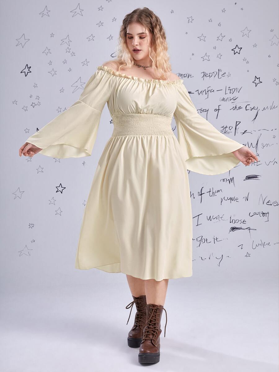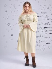 Fairycore Plus Robe Froncée Col Bardot Manches Évasées