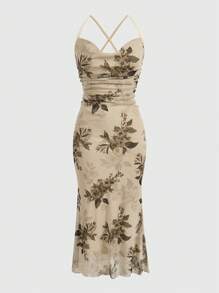 Fairycore Robe d'été à imprimé floral grande taille avec col bénitier