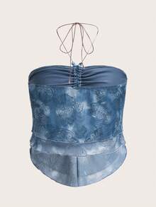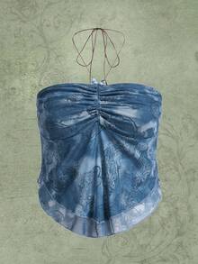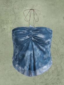 Fairycore Plus Top Ras-Du-Cou Tie Dye Imprimé À Ruché