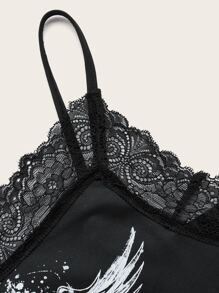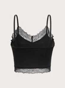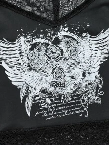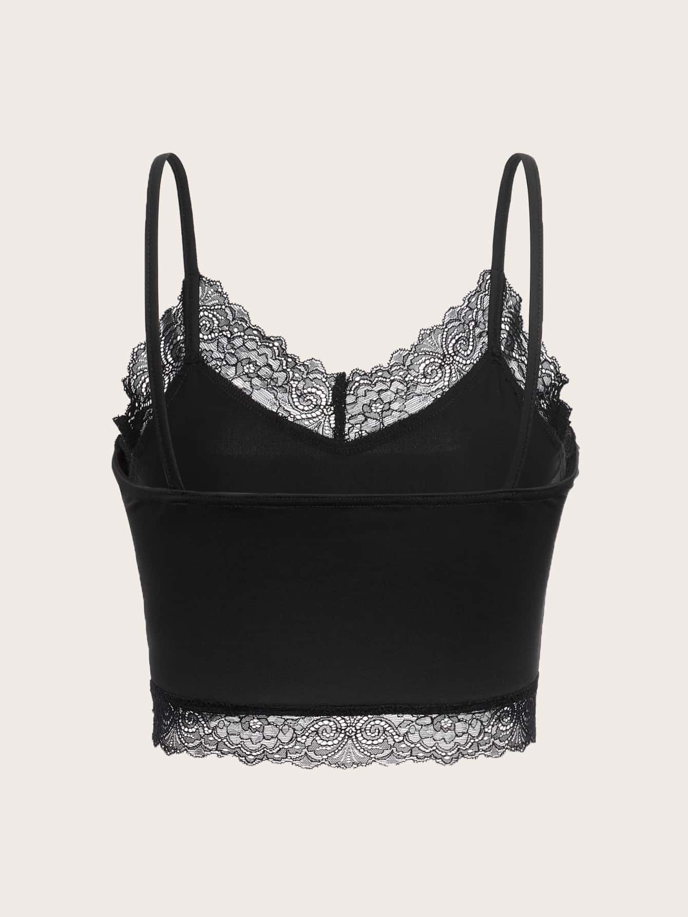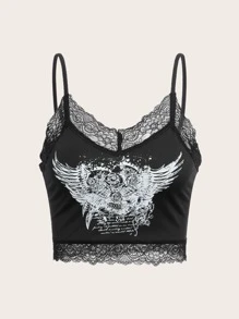 Fairycore Top à fines brides rose et aile ourlet en dentelle