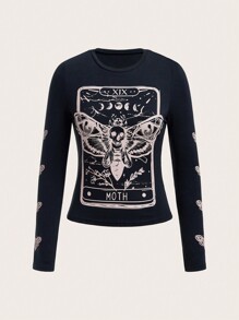 Fairycore T-shirt Tête De Mort & Imprimé Papillon
