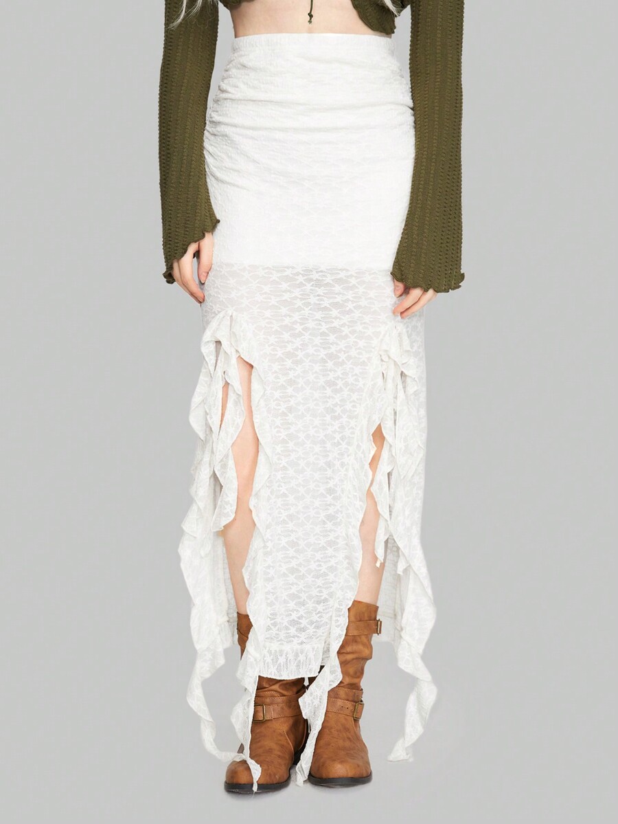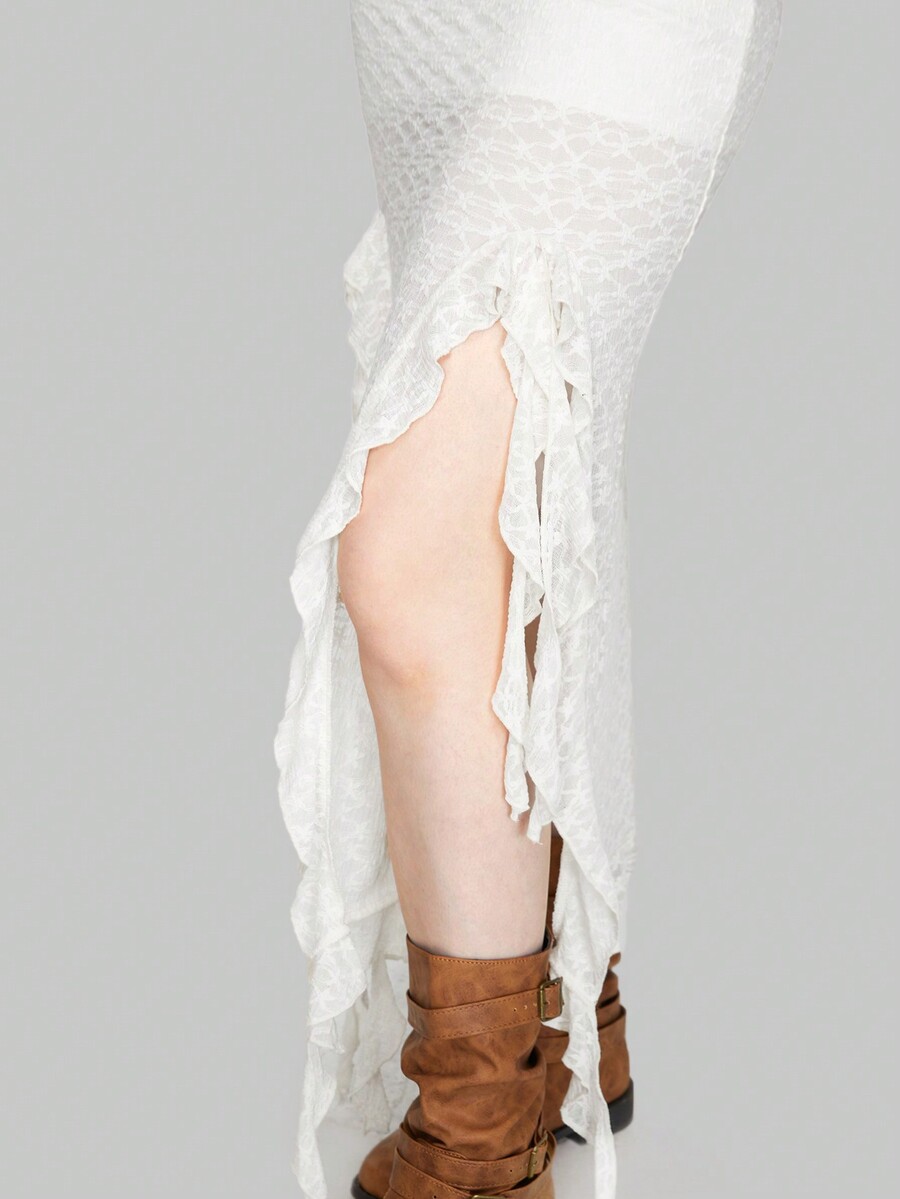 Fairycore Jupe Plissée À Ourlet Asymétrique À Fente Haute Pour Femmes Avec Bordure À Volants