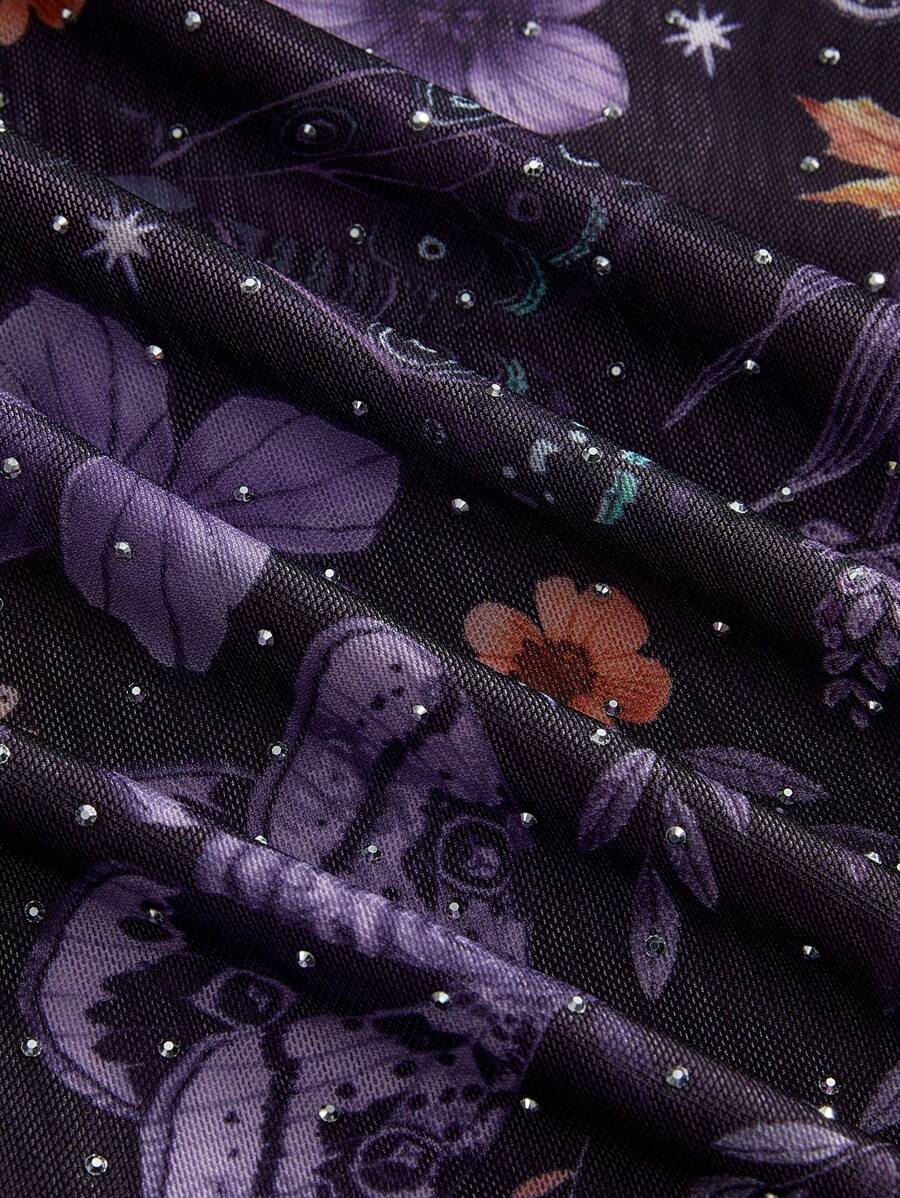Fairycore Jupe sirène avec imprimé papillon et décorée de strass pour femme