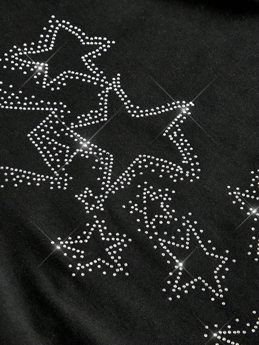 Fairycore T-shirt slim à col ras du cou uni avec design d'étoile en strass pour femmes