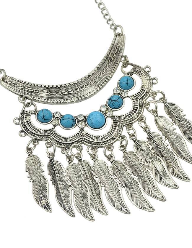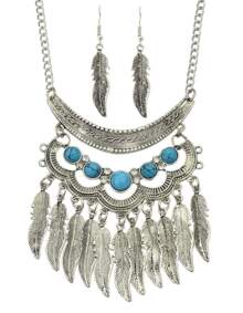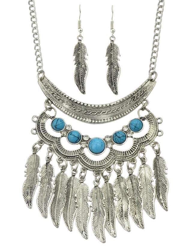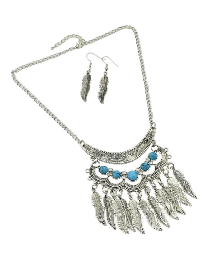 Ensemble de bijou collier et boucle d'oreille indien - argenté