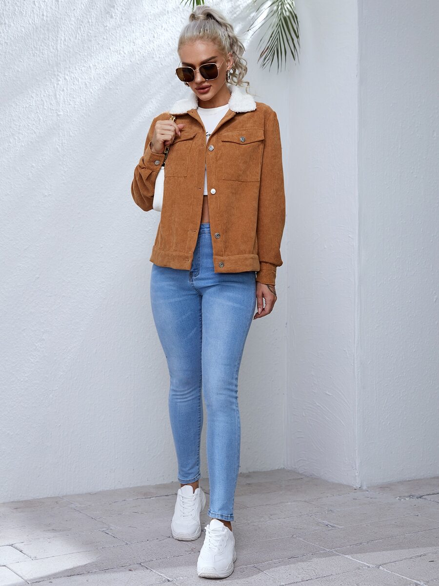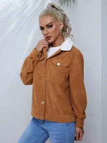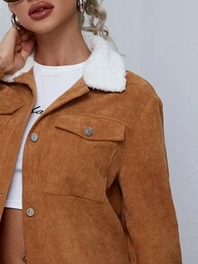 Veste en velours côtelé à ourlet en imitation peau de mouton