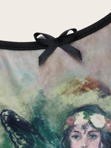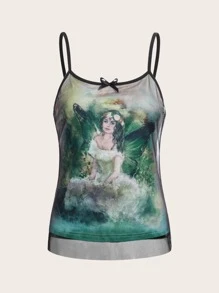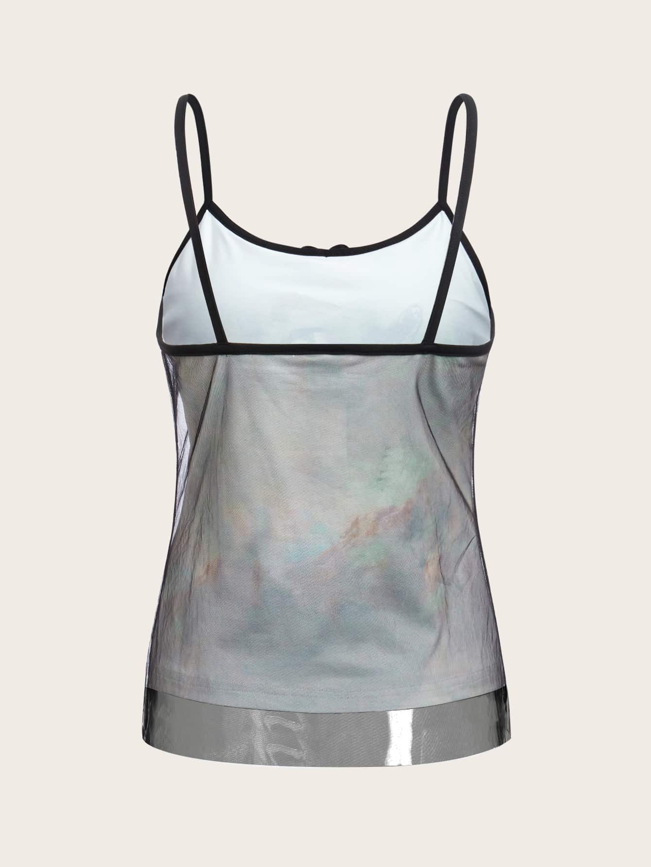 Top à fines brides figure à liseré contrastant en tulle