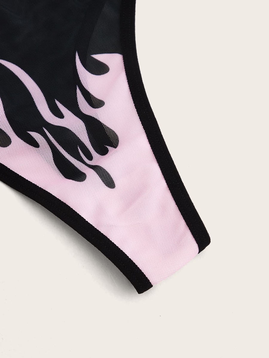 Ensemble de lingerie à imprimé flamme à harnais