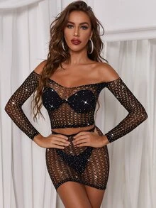 Ensemble sexy en résille (sans soutien-gorge et culotte)