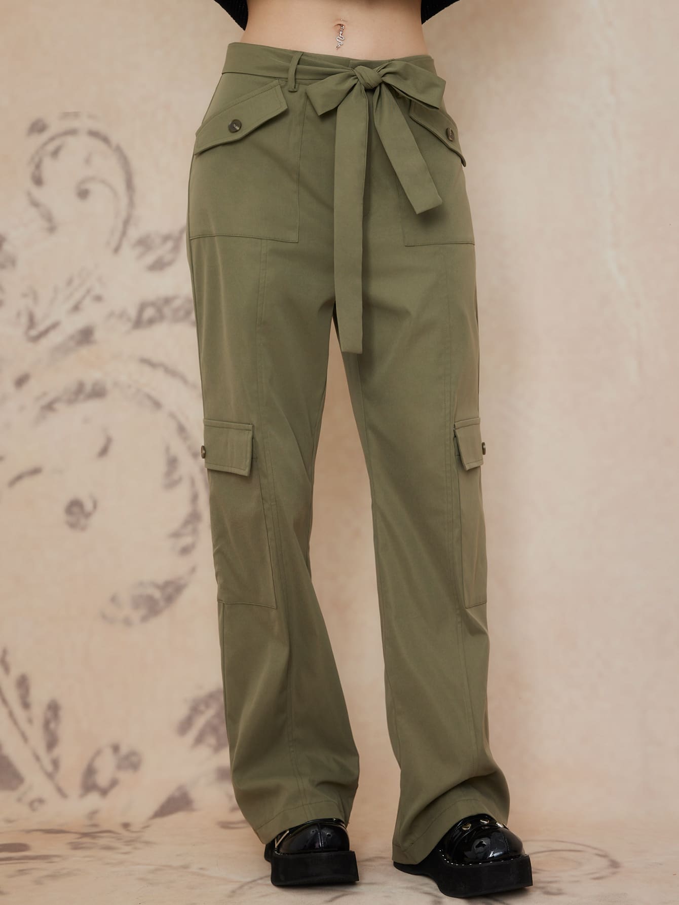 Pantalon poche à rabat ceinturé
