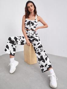 Ensemble pantalon et top à imprimé vache avec poche
