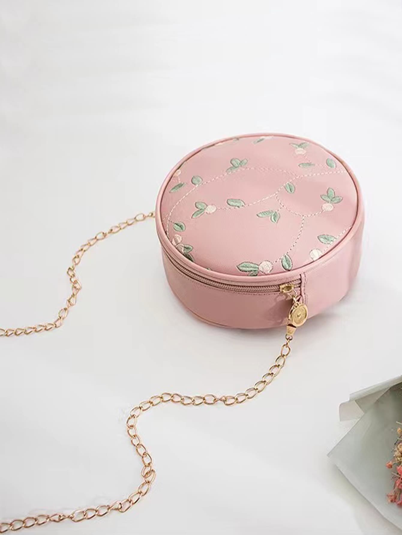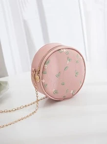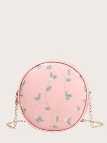 Sac rond brodé fleur à chaîne