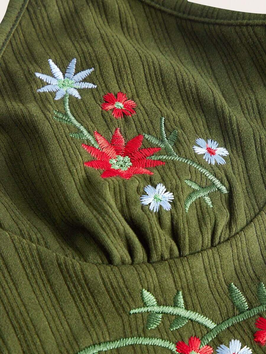 Fairycore Top Brodé Fleur À Épaule Nouée