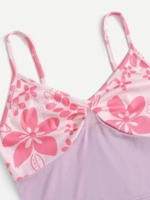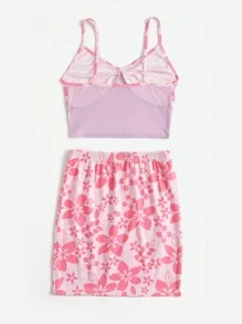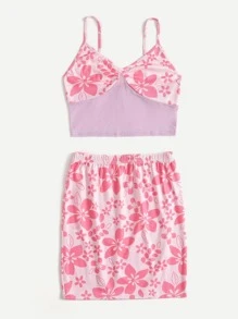 Ensemble jupe et top à fines brides côtelé fleuri à blocs de couleurs