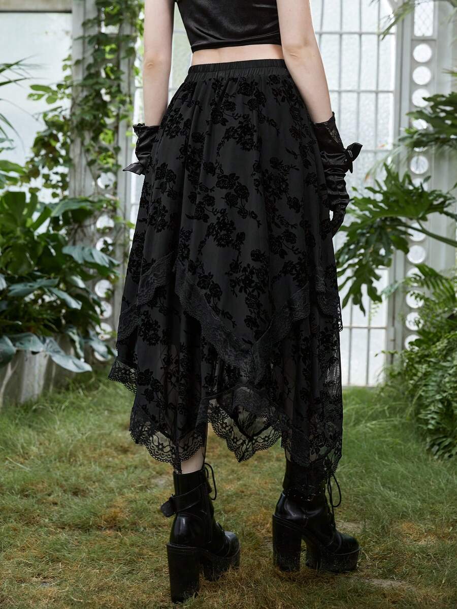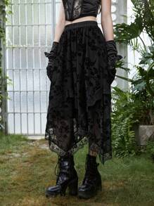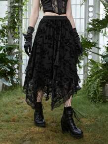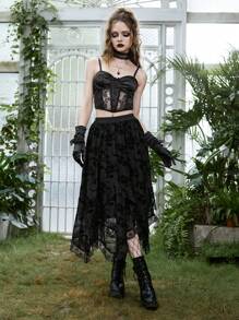 Goth Jupe Imprimé Floral Asymétrique En Tulle