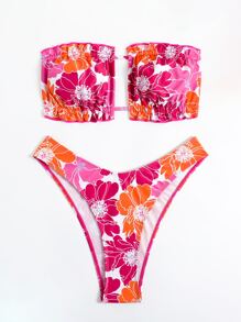 Ensemble bikini d'été de plage avec bandeau imprimé floral et coupe haute