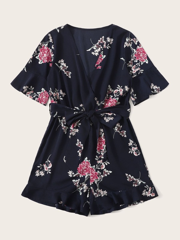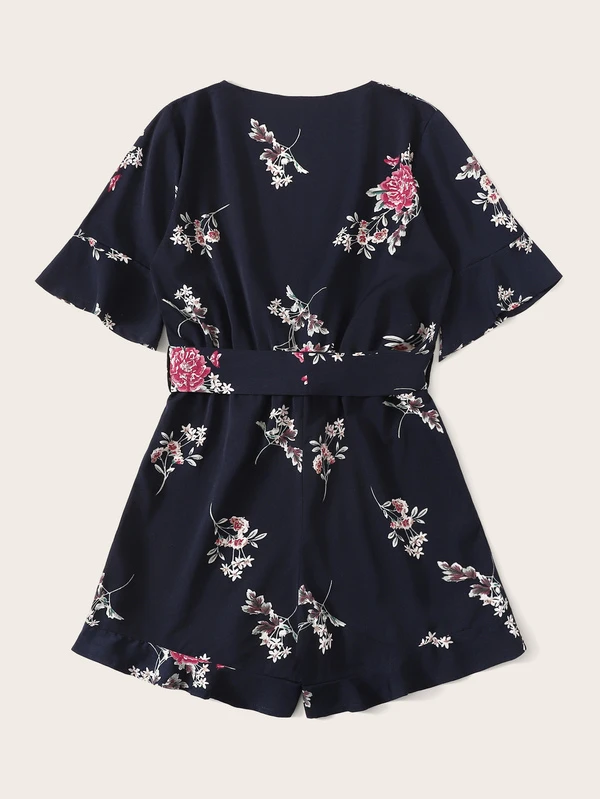 Combishort cache-cœur fleuri avec nœud