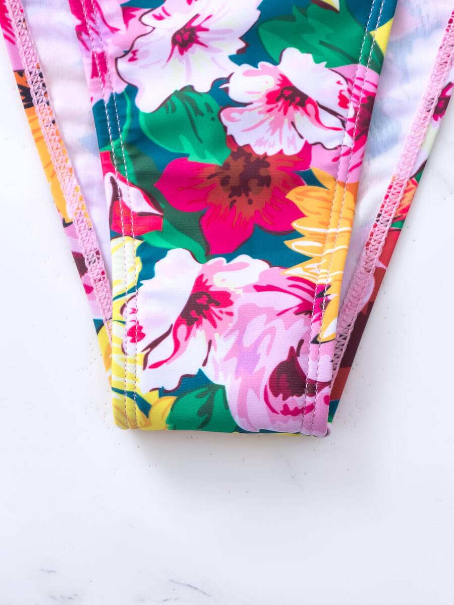 Ensemble de Bikini imprimé fleuri de plage d'été, garniture à volants, Top Push Up et bas taille haute, Bikini 2 pièces