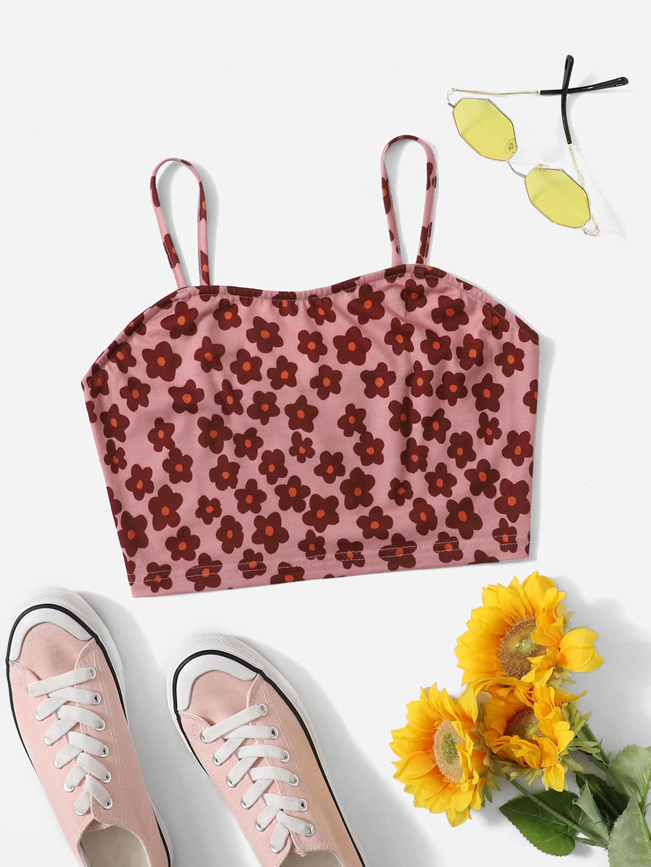Top à fines brides à imprimé floral