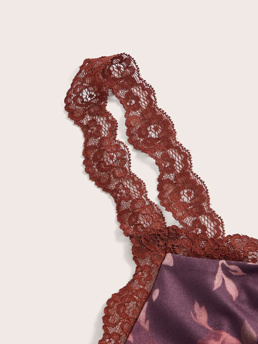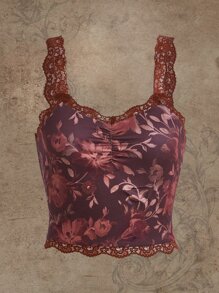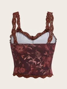 Top à imprimé floral en dentelle ample sangle