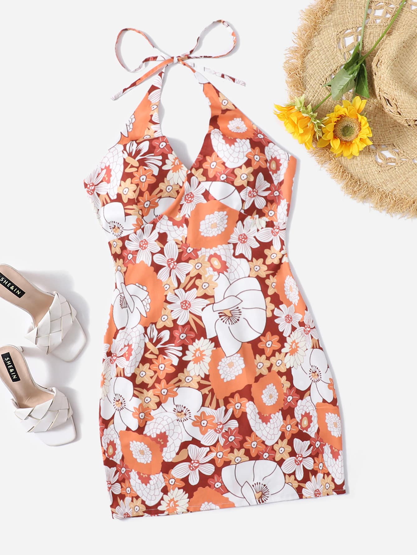 Robe ras-du-cou à imprimé floral