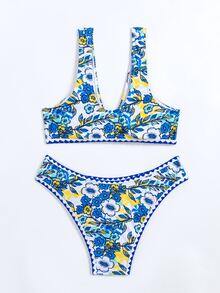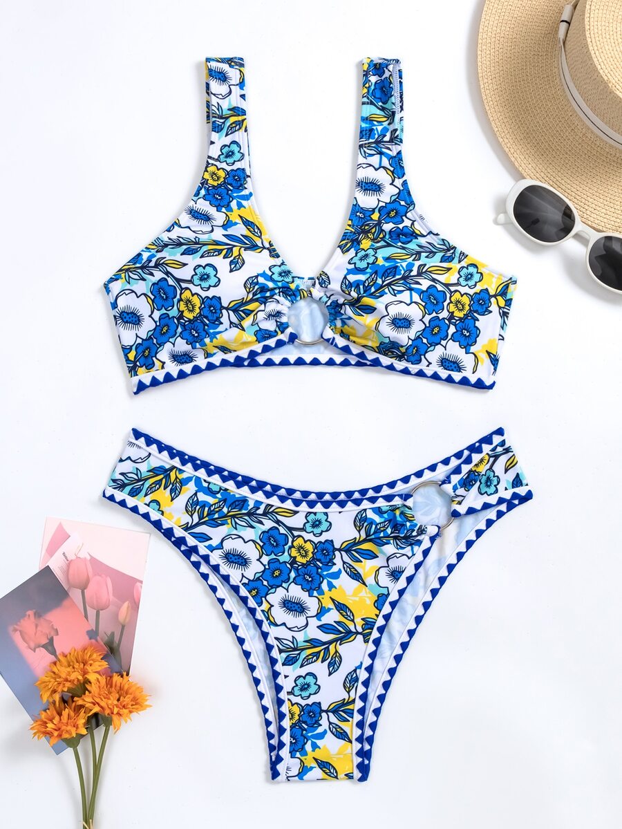 Ensemble de bikini de plage d'été avec anneau floral imprimé