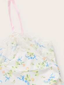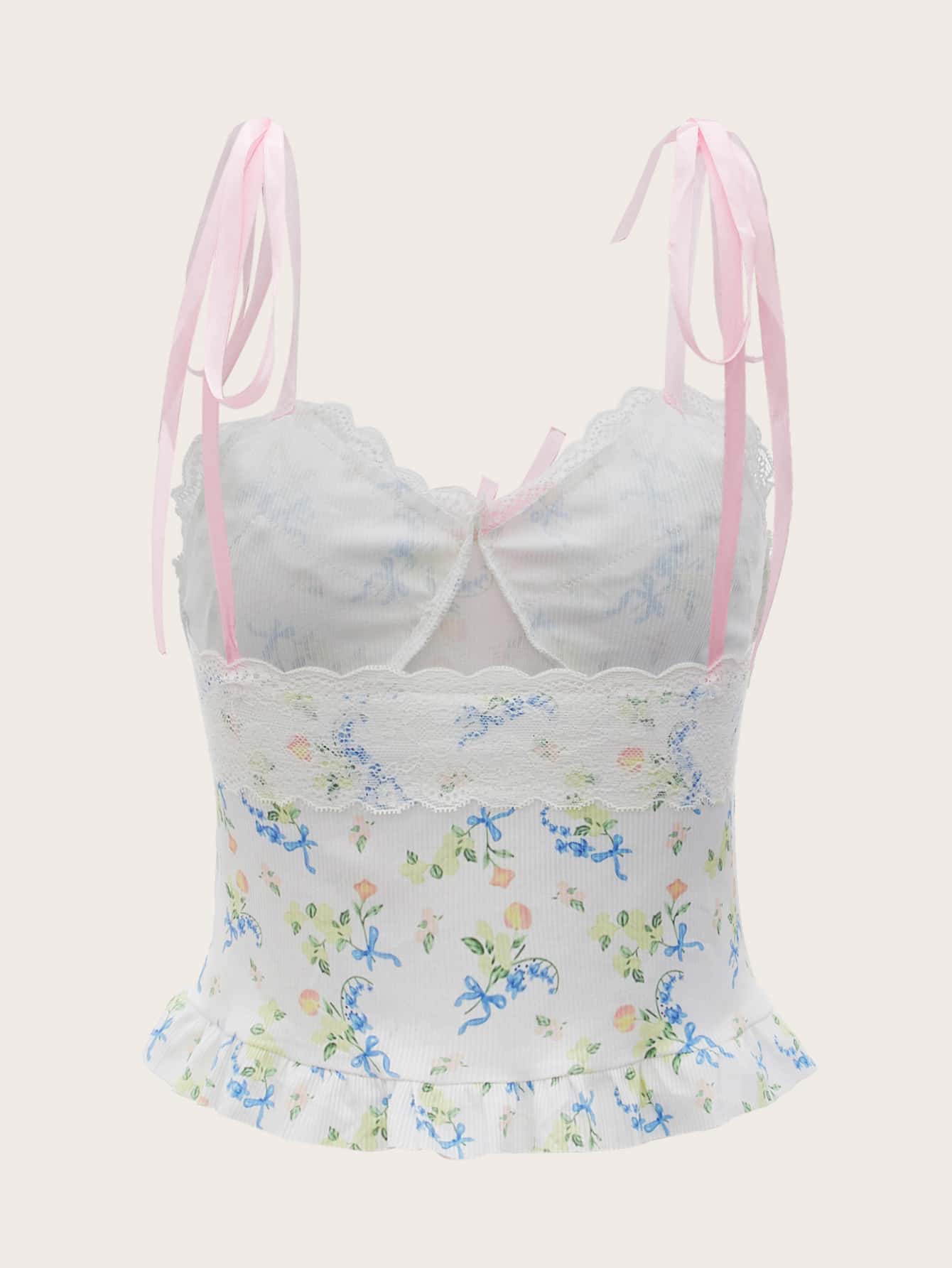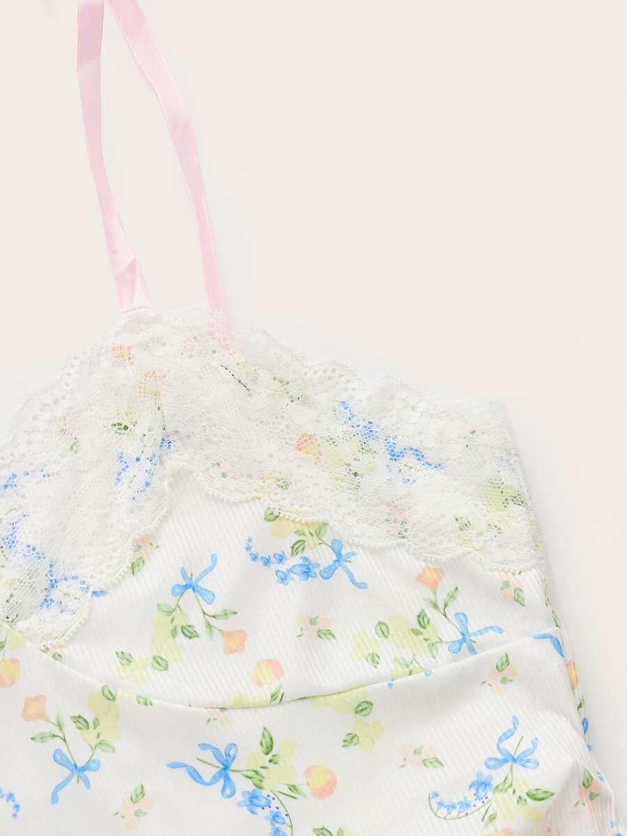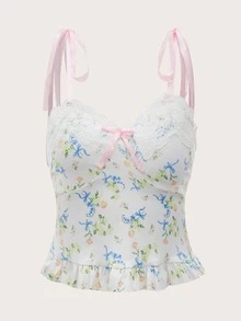 Top à fines brides à imprimé floral à volants à épaule nouée