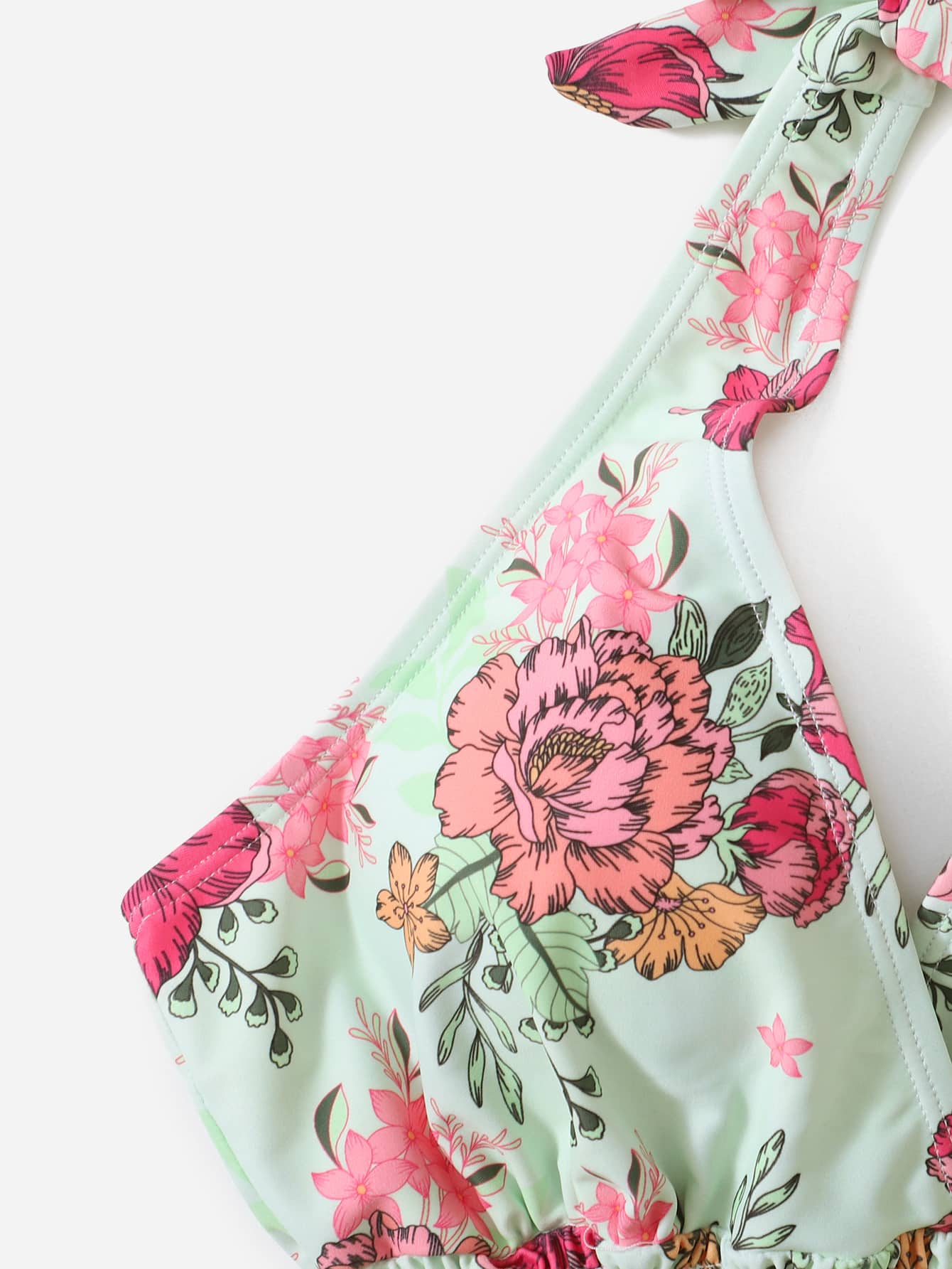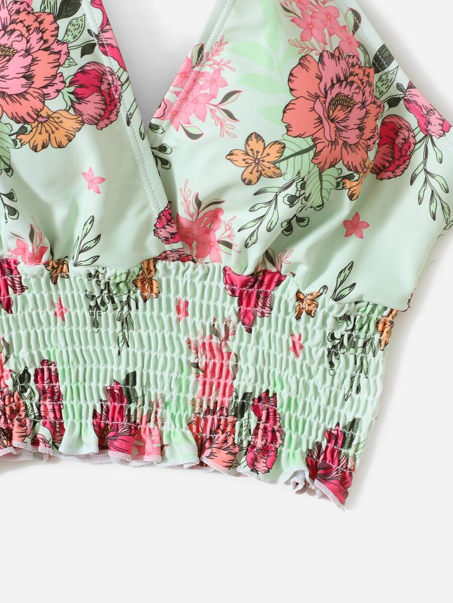 Haut de tankini à imprimé floral froncé ras-du-cou